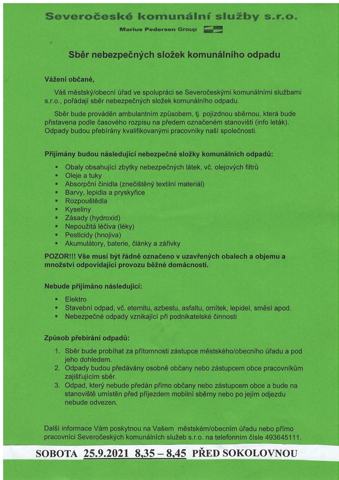 Úvod > Aktuality > Sběr nebezpečného odpadu