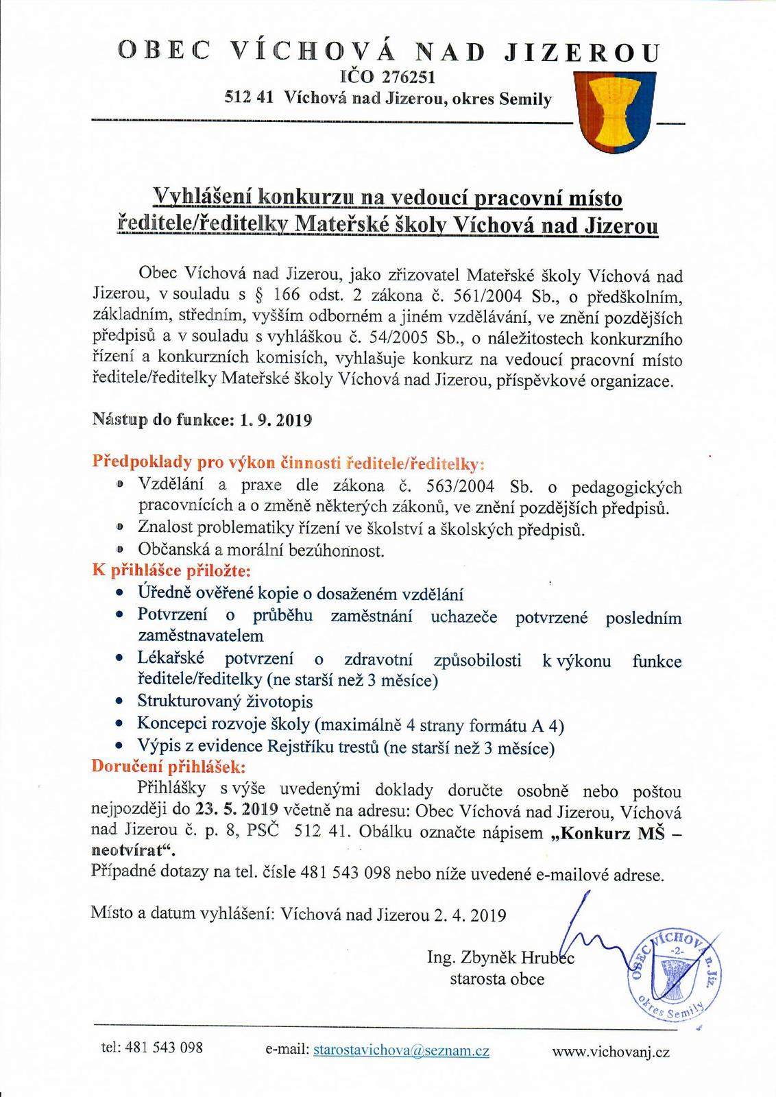 Úvod > Aktuality > Víchová - konkurz MŠ